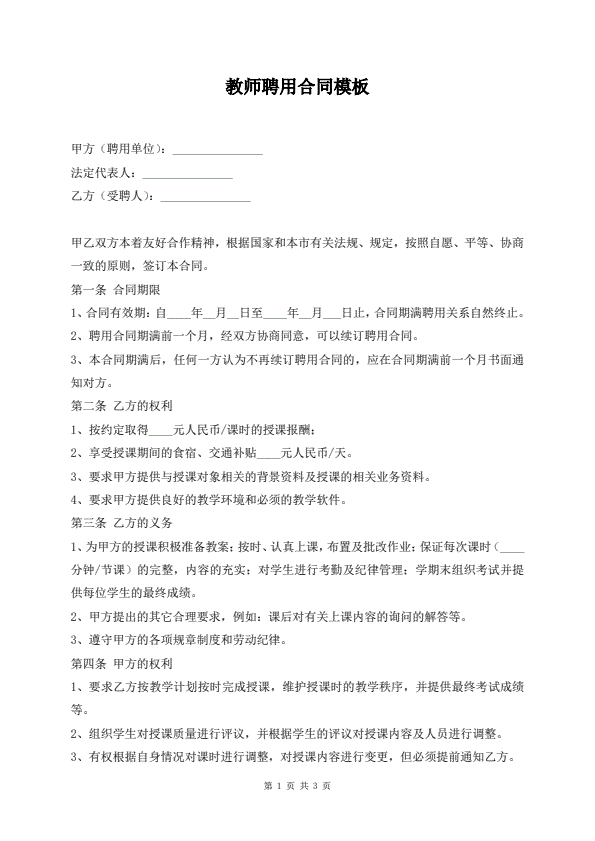 教师聘用合同模板