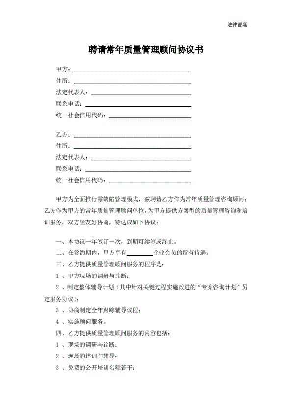 聘请常年质量管理顾问协议书