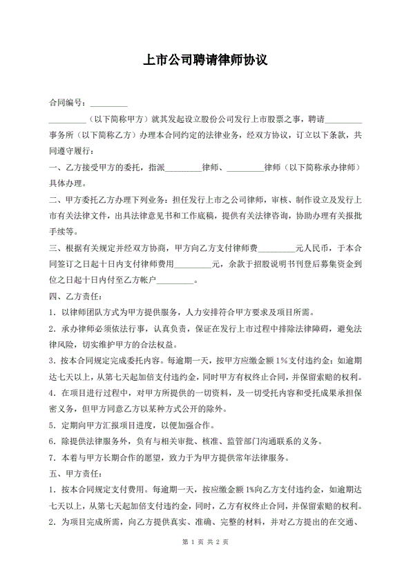 上市公司聘请律师协议