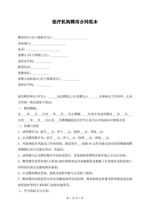 医疗机构聘用合同范本