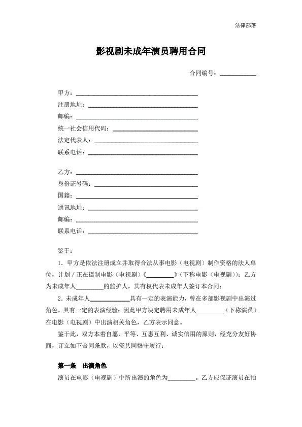 影视剧未成年演员聘用合同