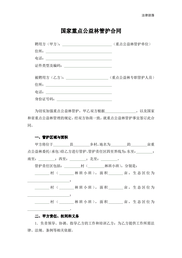 国家重点公益林管护合同
