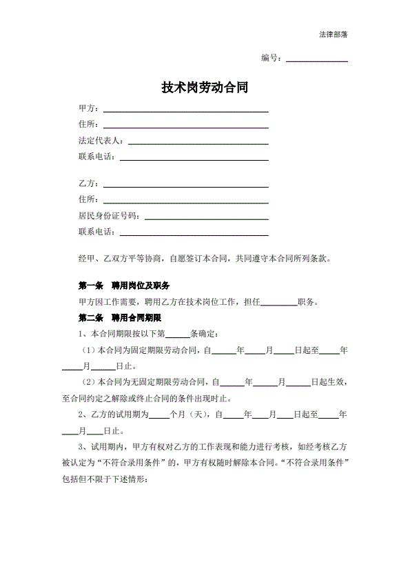 技术岗劳动合同