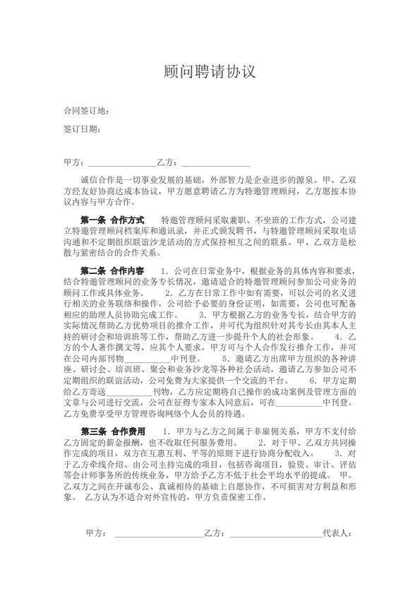 顾问聘请协议