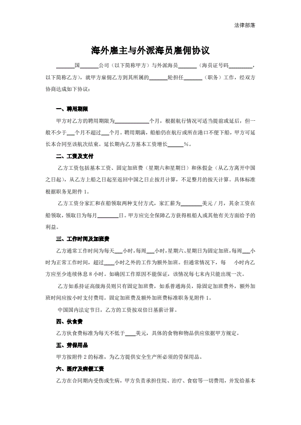海外雇主与外派海员雇佣协议