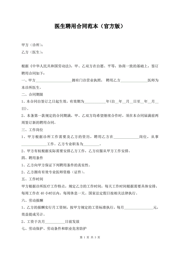 医生聘用合同范本(官方版)