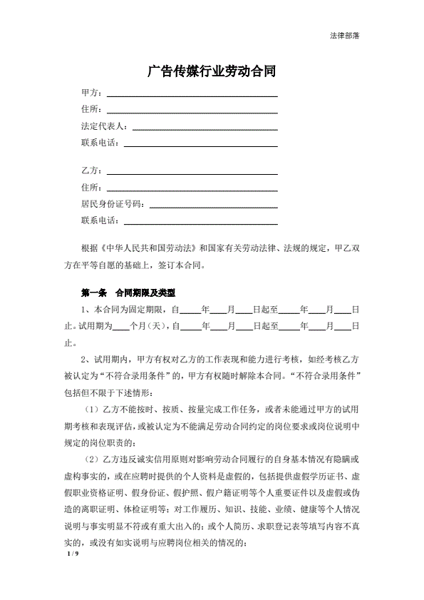 广告传媒行业劳动合同