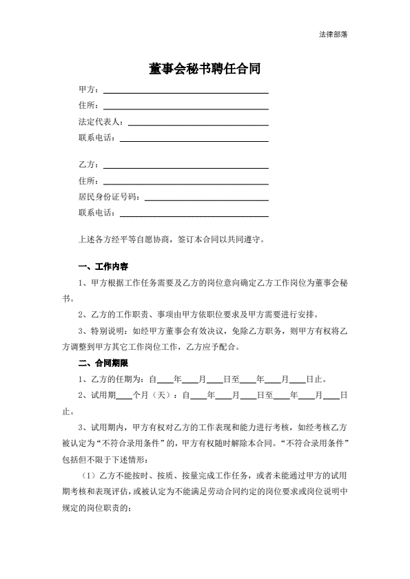 董事会秘书聘任合同