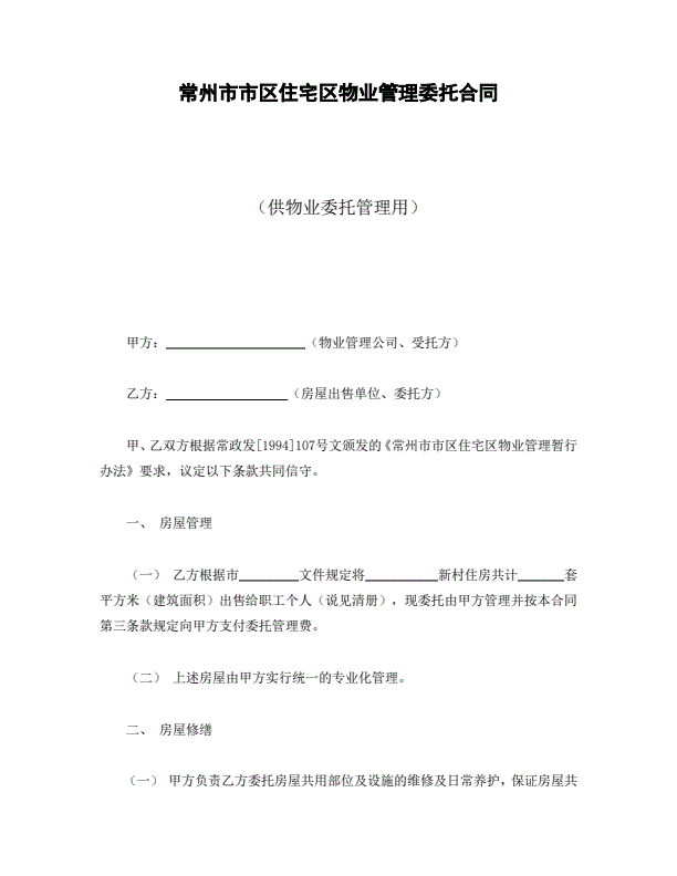 常州市市区住宅区物业管理委托合同(供物业委托管理用)