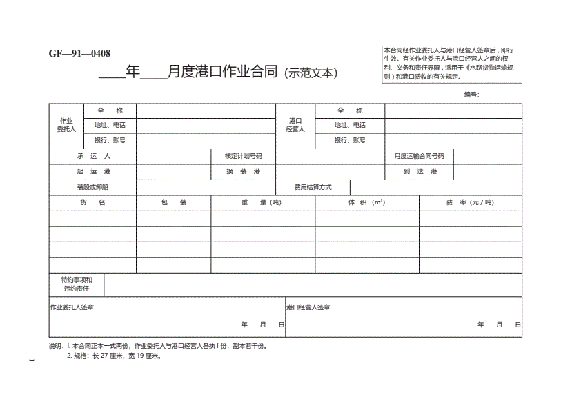 年??月度港口作业合同(示范文本) GF—91—0408