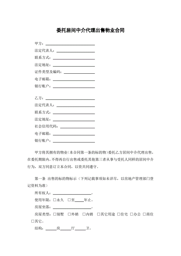 委托居间中介代理出售物业合同