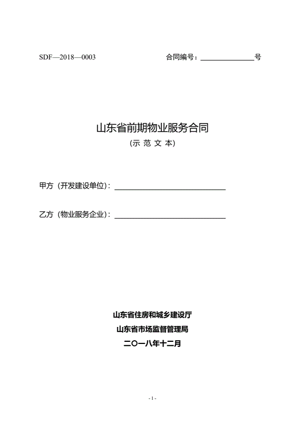 2018SDF-2018-0003《山东省前期物业服务合同示范文本》
