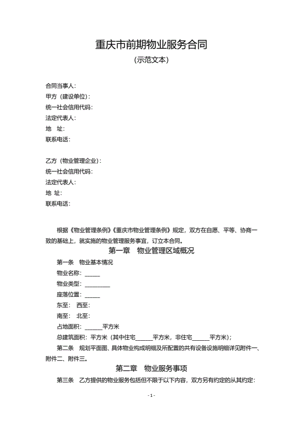 重庆市前期物业服务合同示范文本(2021版)