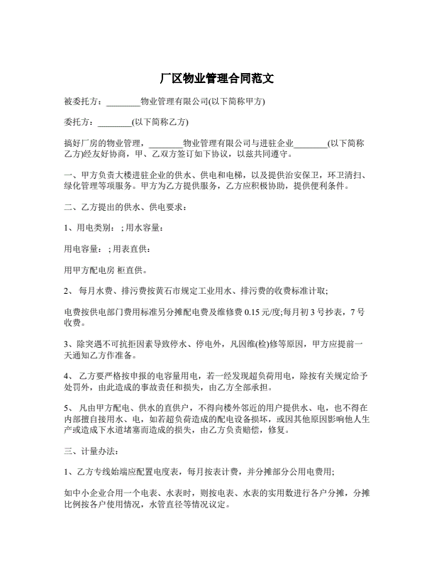 厂区物业管理合同范文