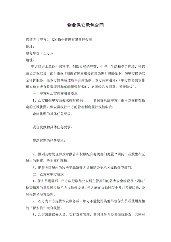 物业保安承包合同