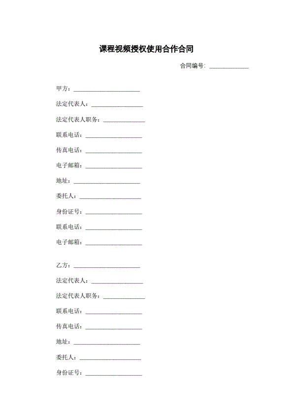 课程视频授权使用合作合同