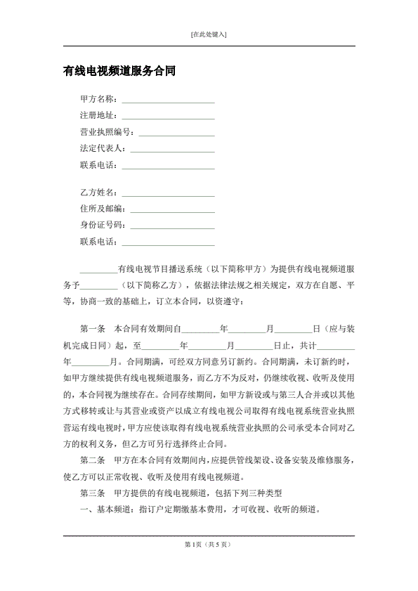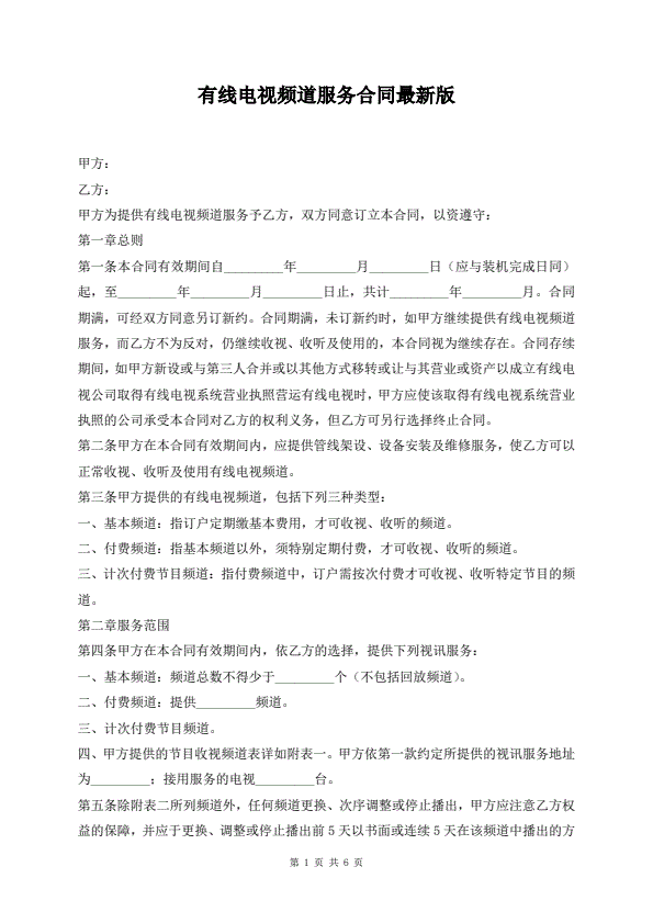 有线电视频道服务合同最新版