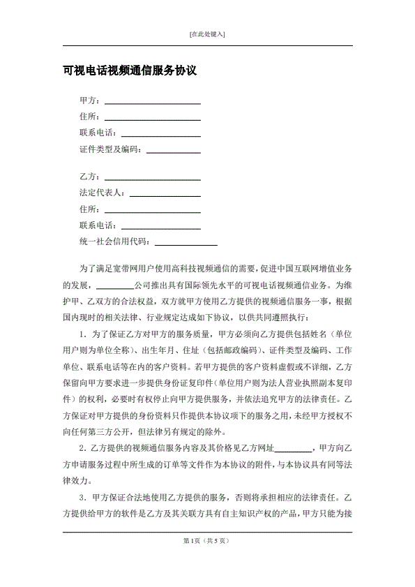 可视电话视频通信服务协议