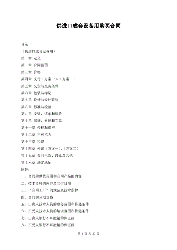 供进口成套设备用购买合同