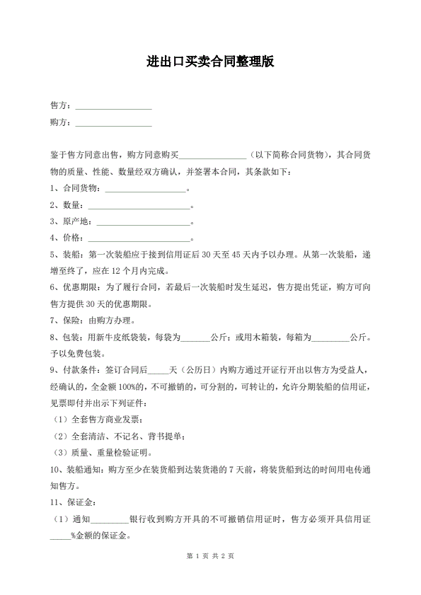 进出口买卖合同整理版