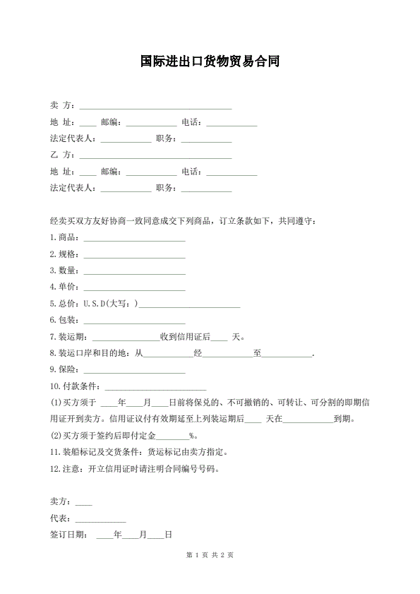 国际进出口货物贸易合同