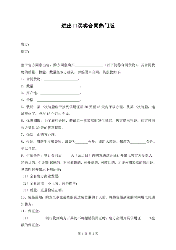 进出口买卖合同热门版
