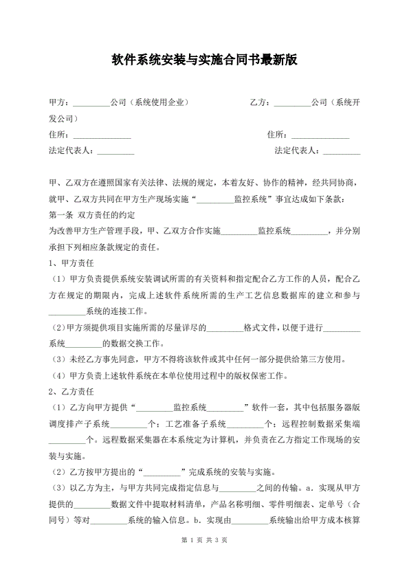 软件系统安装与实施合同书最新版