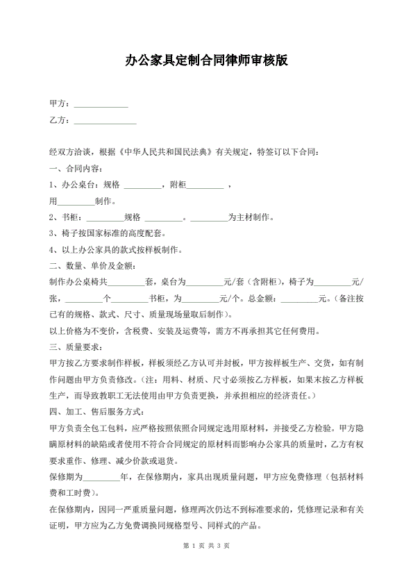 办公家具定制合同律师审核版