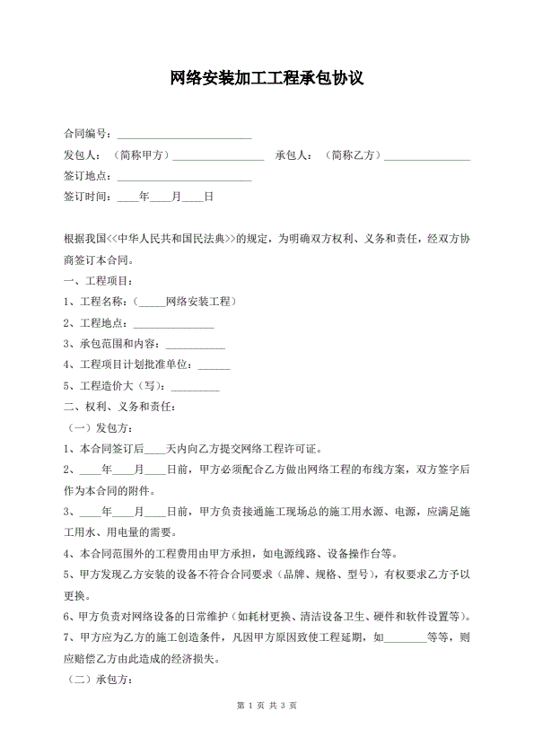网络安装加工工程承包协议