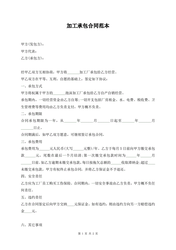 加工承包合同范本