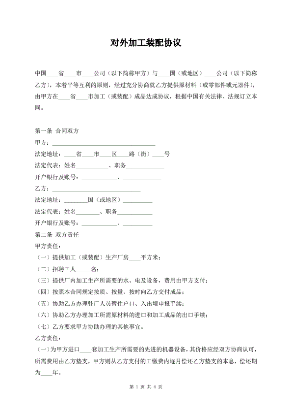 对外加工装配协议