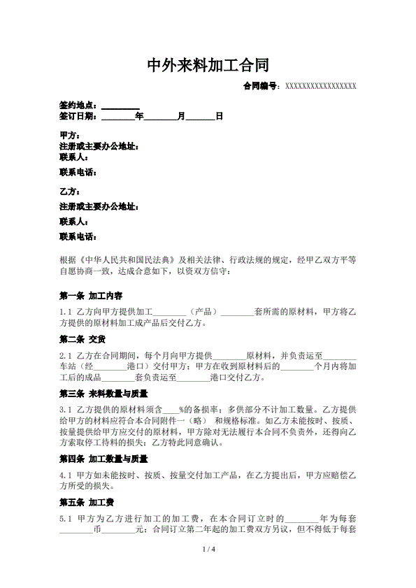 中外来料加工合同