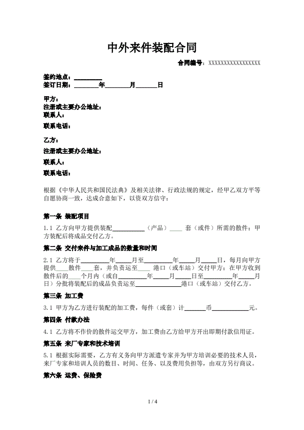 中外来件装配合同
