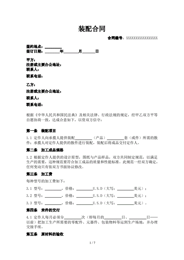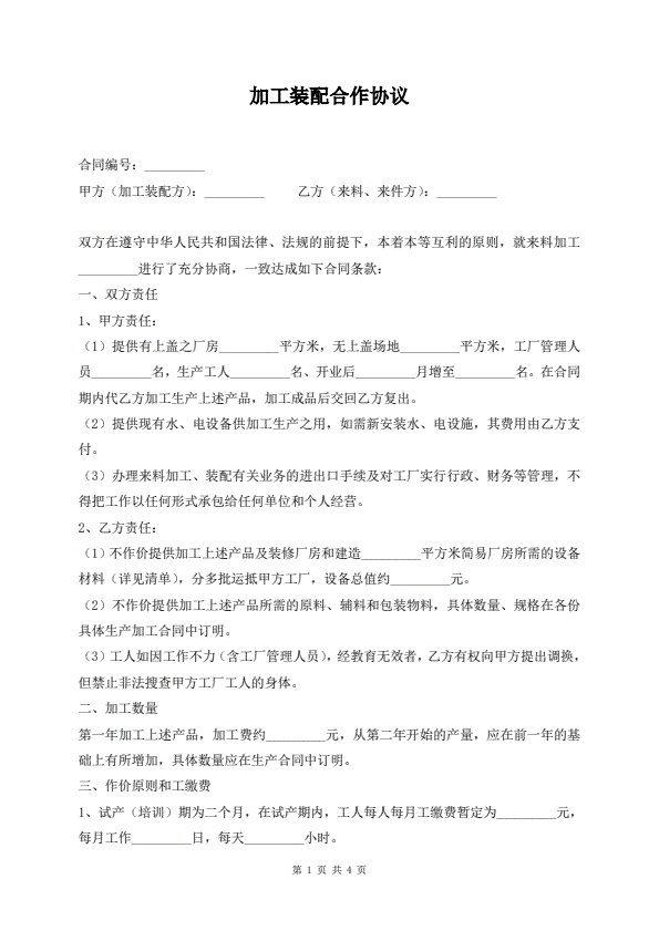 加工装配合作协议