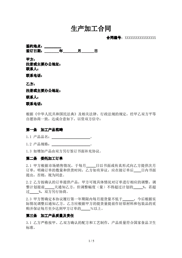 生产加工合同