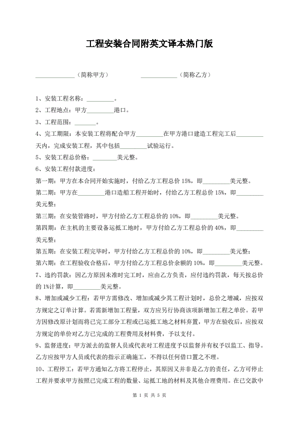 工程安装合同附英文译本热门版