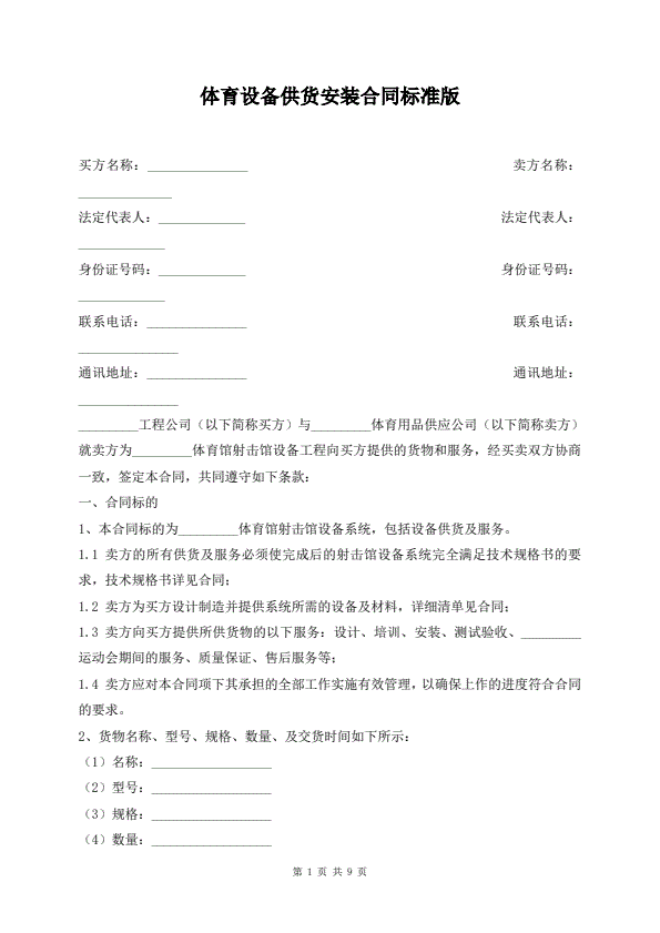 体育设备供货安装合同标准版