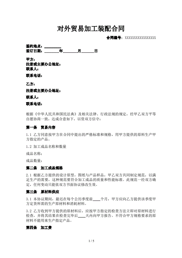 对外贸易加工装配合同