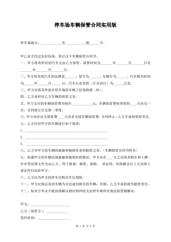 停车场车辆保管合同实用版