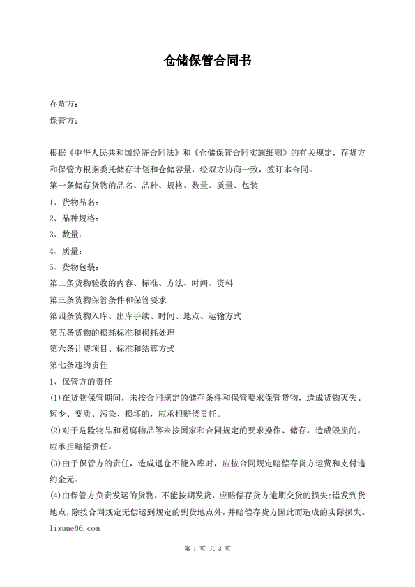 仓储合同范本
