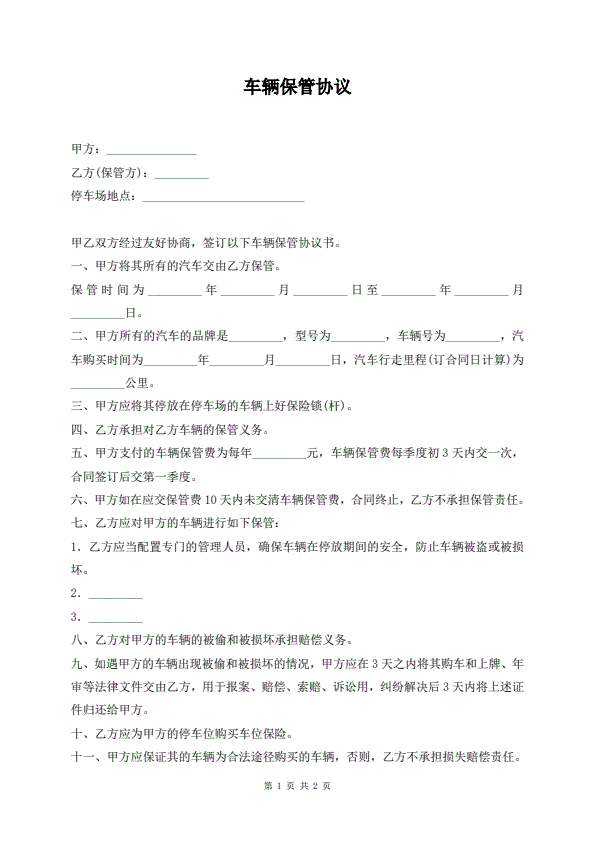 车辆保管协议