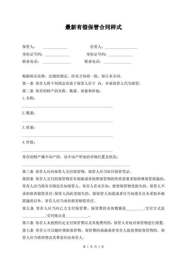 最新有偿保管合同样式