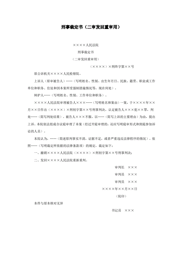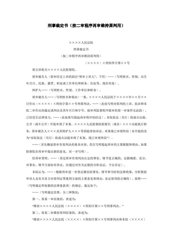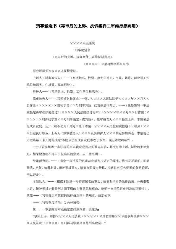 刑事裁定书(再审后的上诉、抗诉案件二审维持原判用)