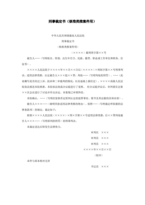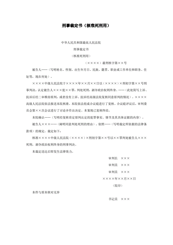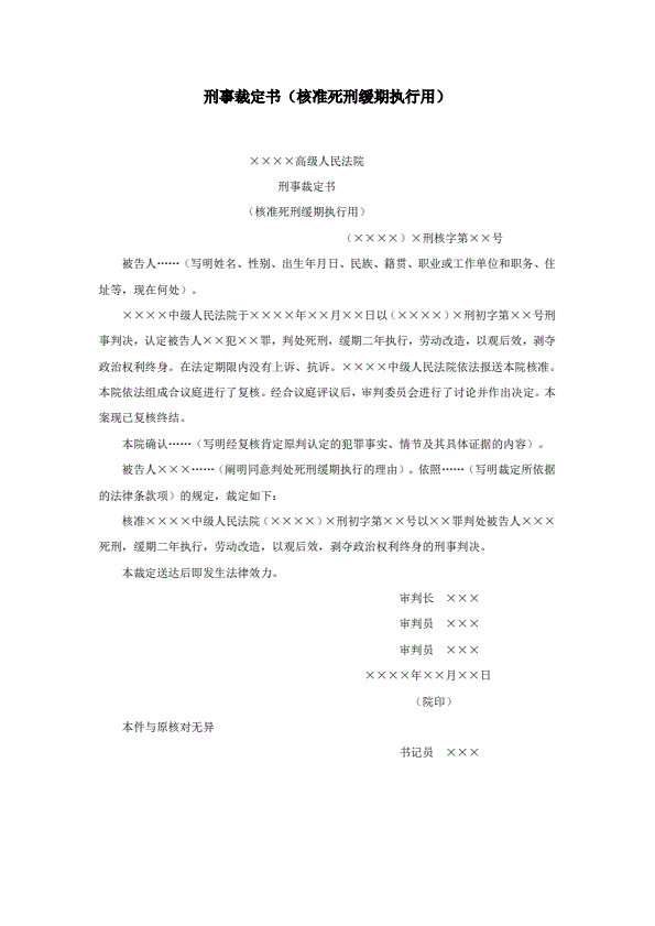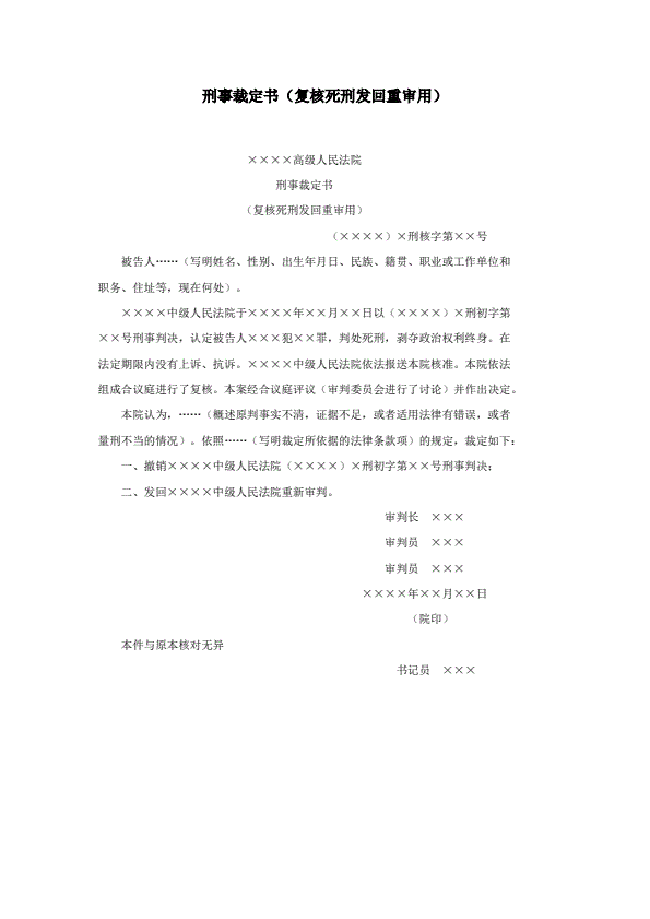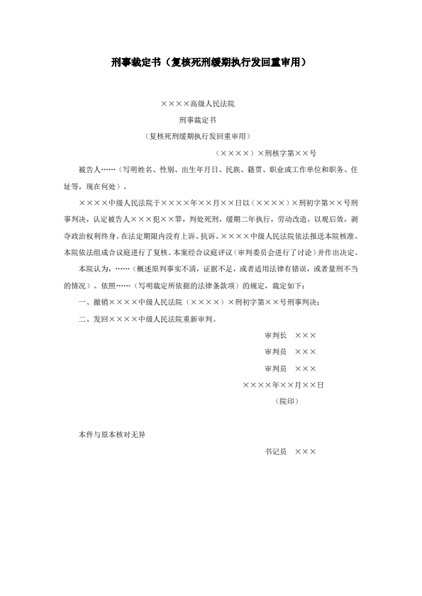 刑事裁定书(复核死刑缓期执行发回重审用)