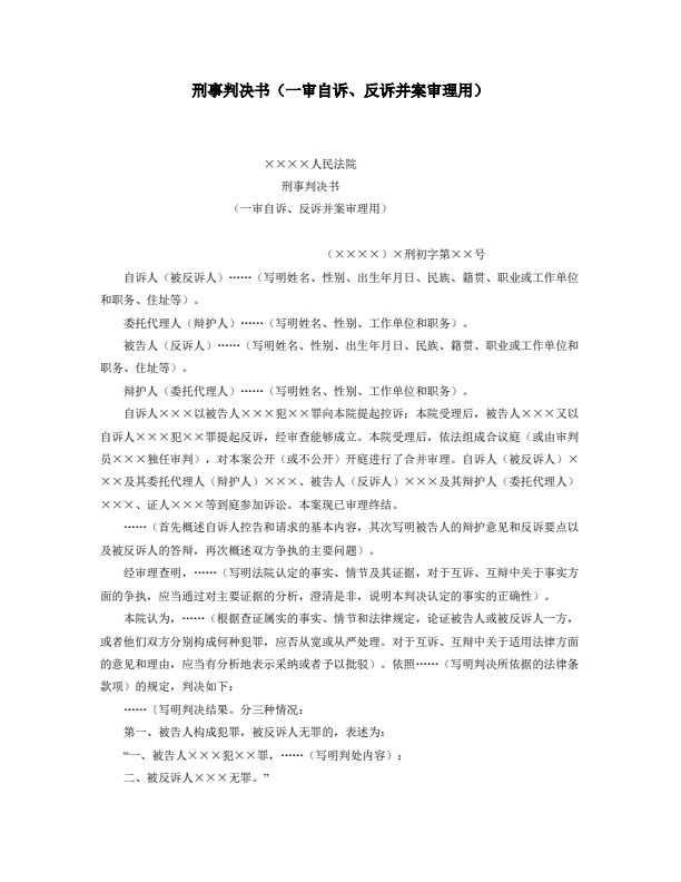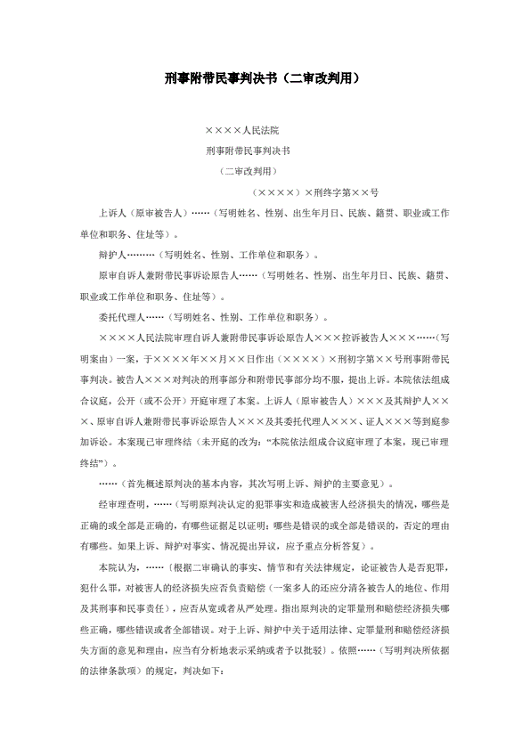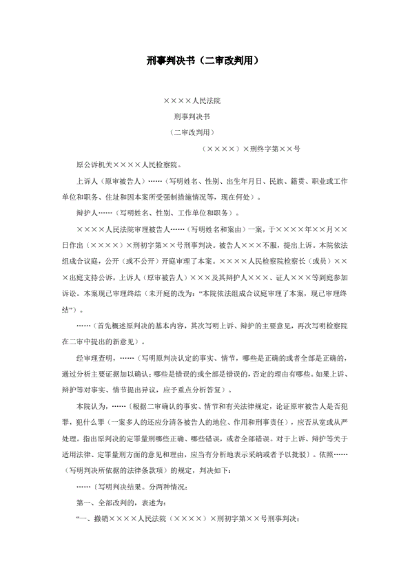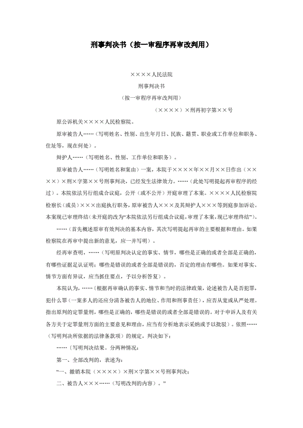 刑事判决书(再审后的上诉、抗诉案件二审改判用)