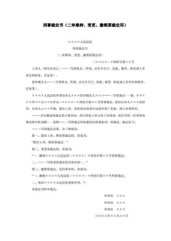 刑事裁定书(二审维持、变更、撤销原裁定用)