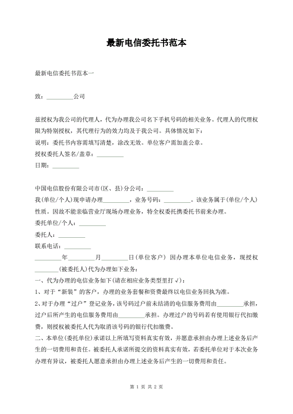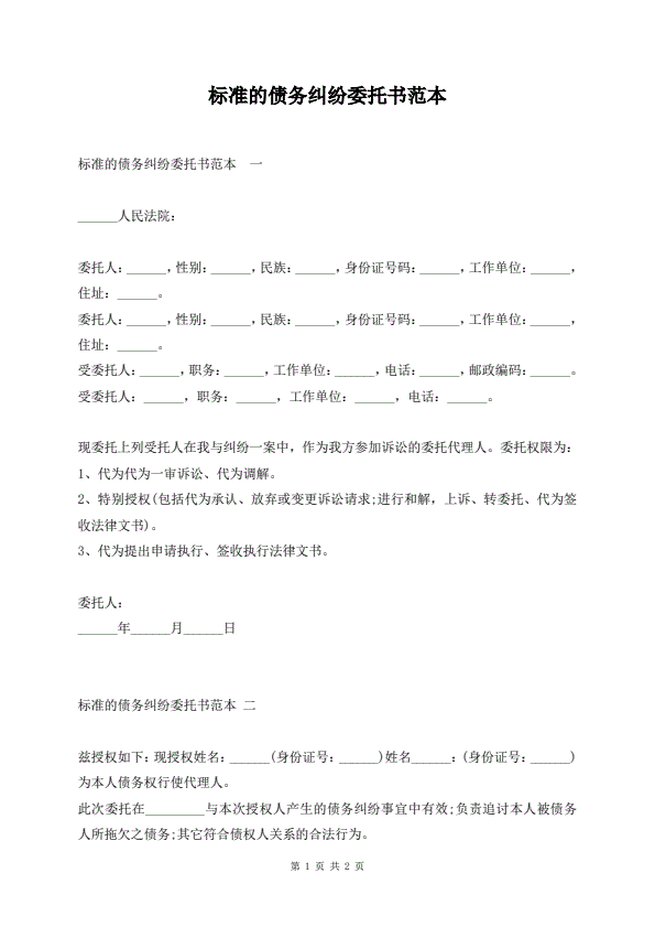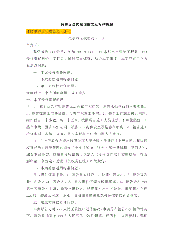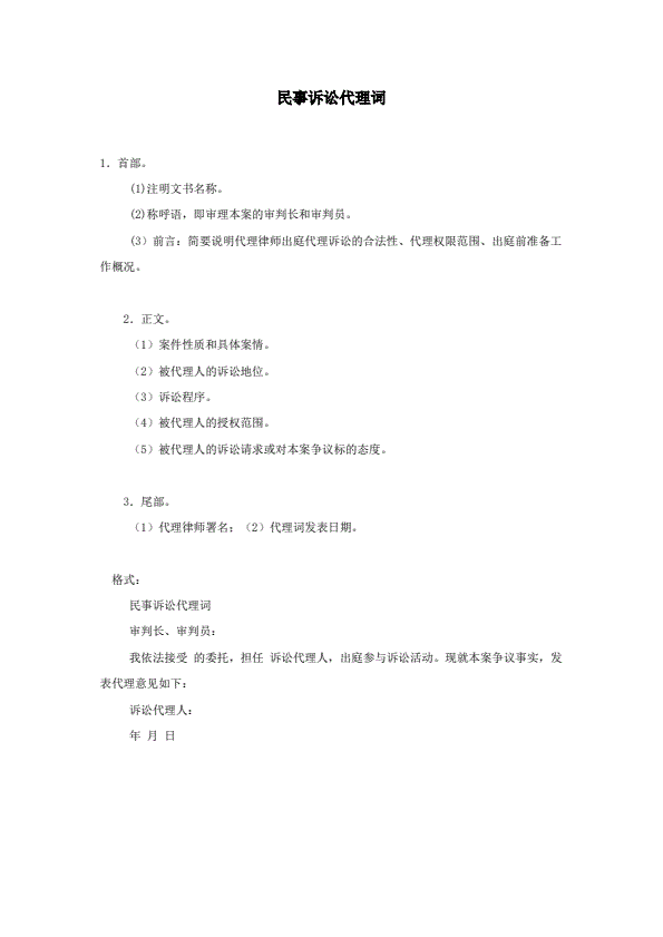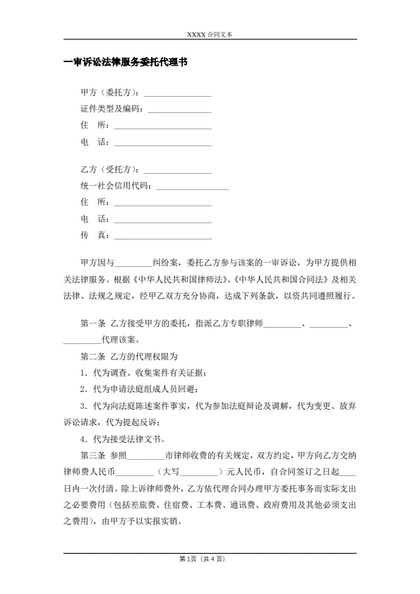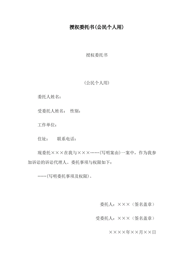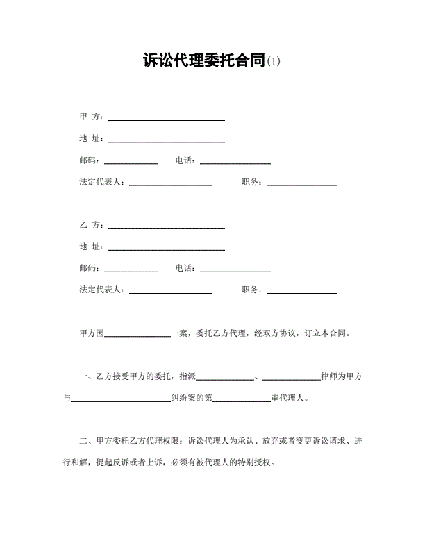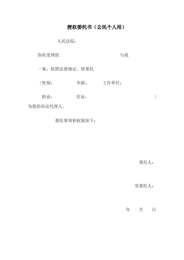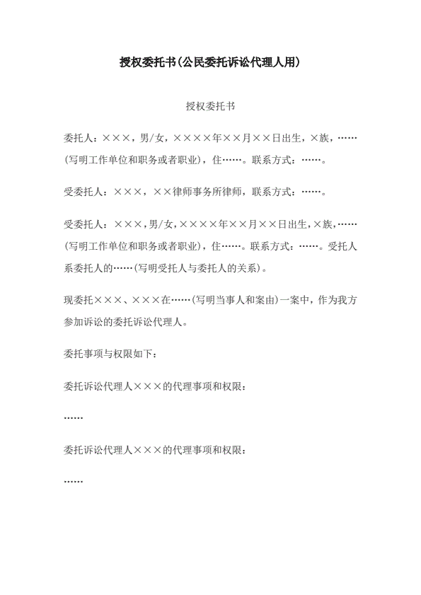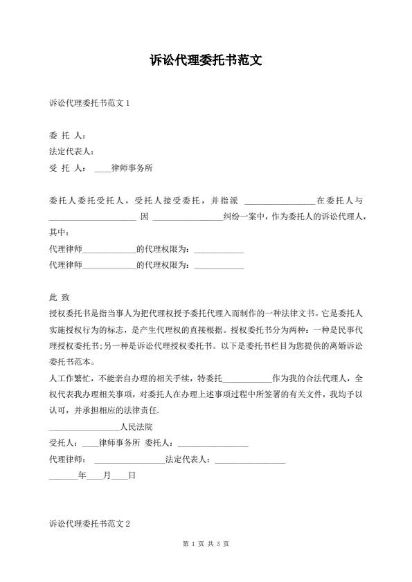 诉讼代理委托书范文
