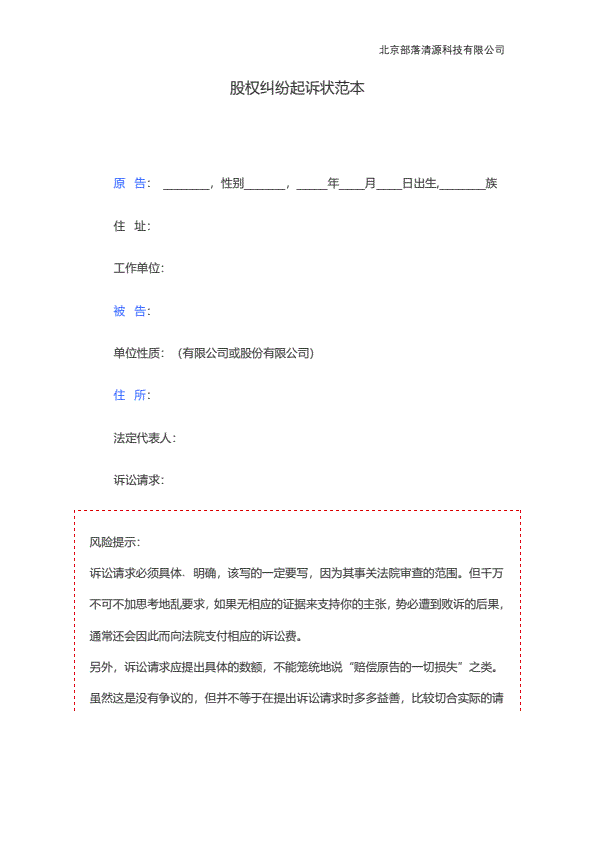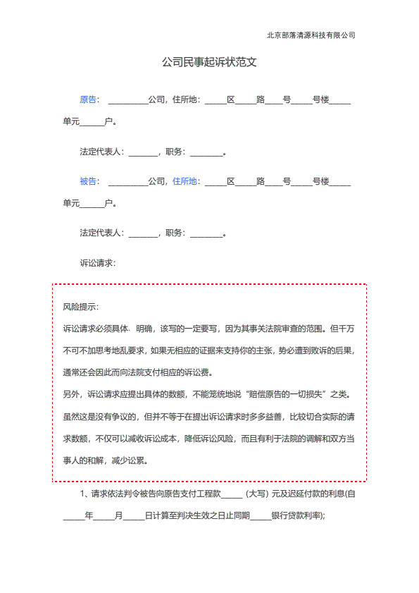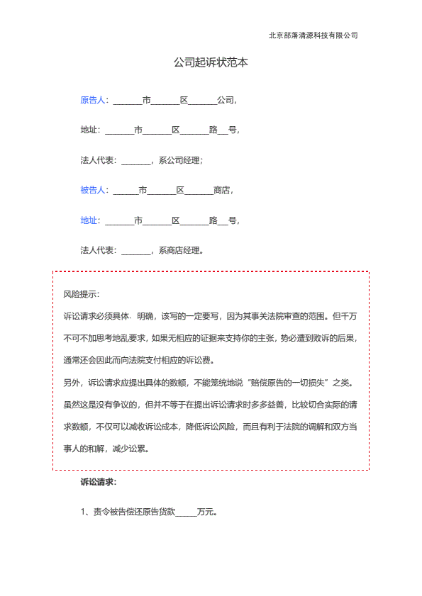 公司民事起诉状范文