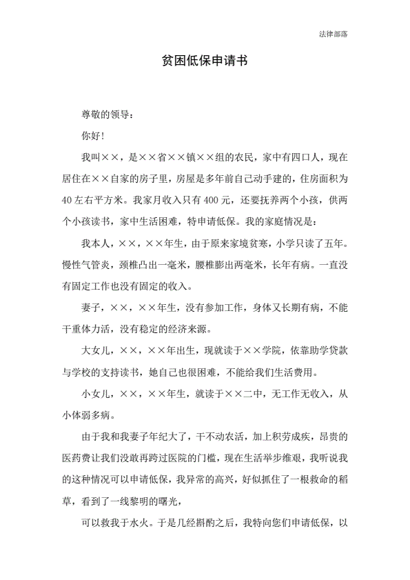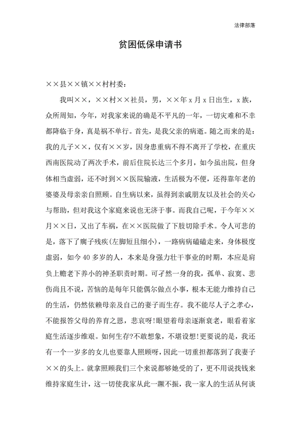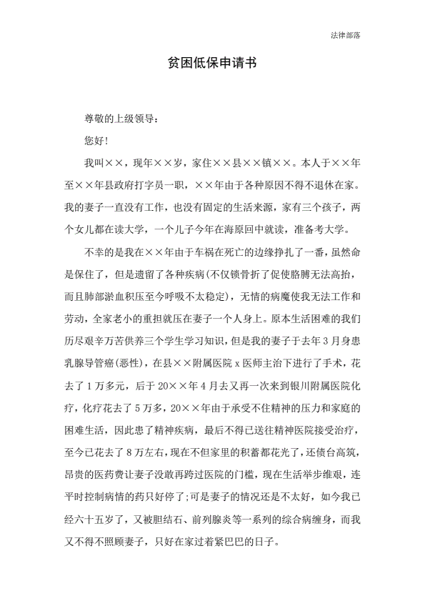 贫困低保申请书1000字模版