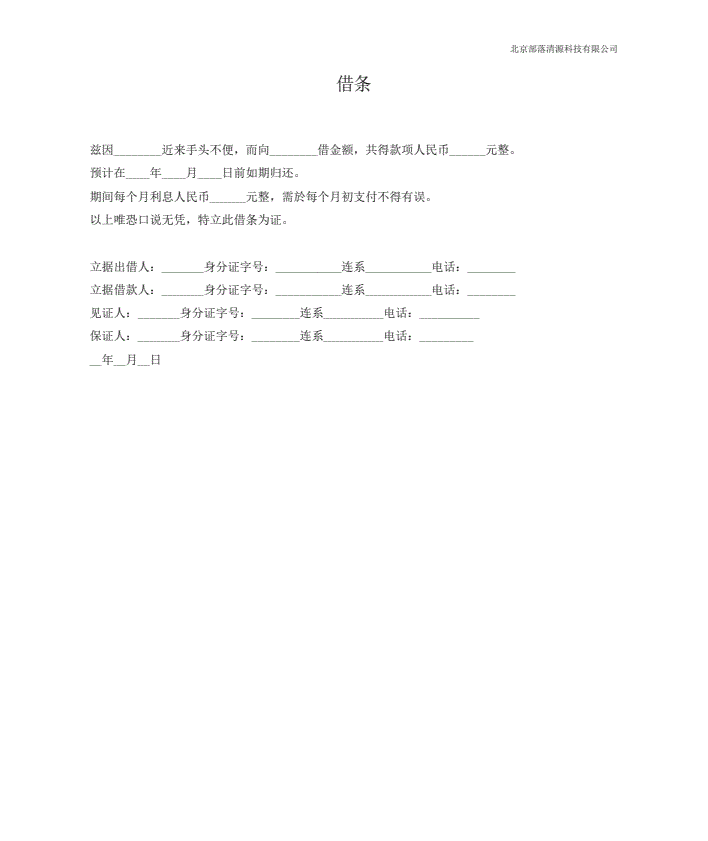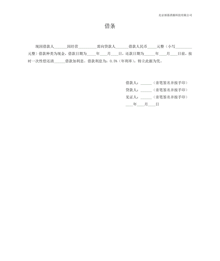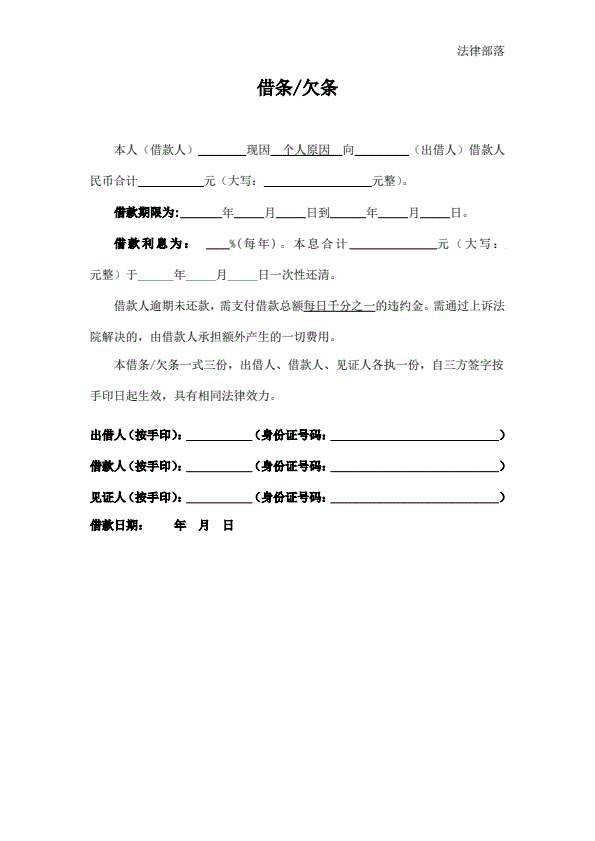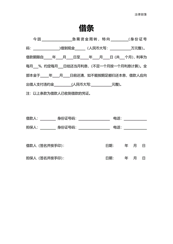 日常借条(无担保人)